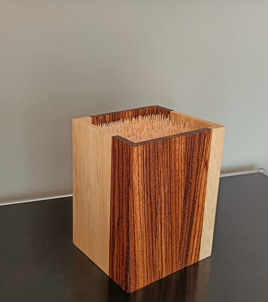 Zebrano und Ahorn, massiv, gefüllt mit Holzspießen (18 cm)
